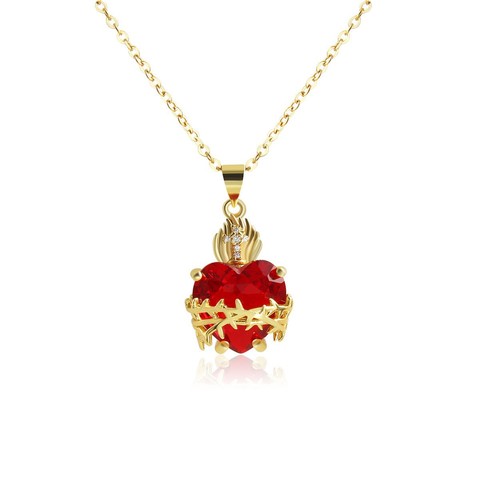 예수의 왕실 신성한 마음 목걸이 18K 골드 채워진 보석 여성 불타는 붉은 심장 펜던트 목걸이